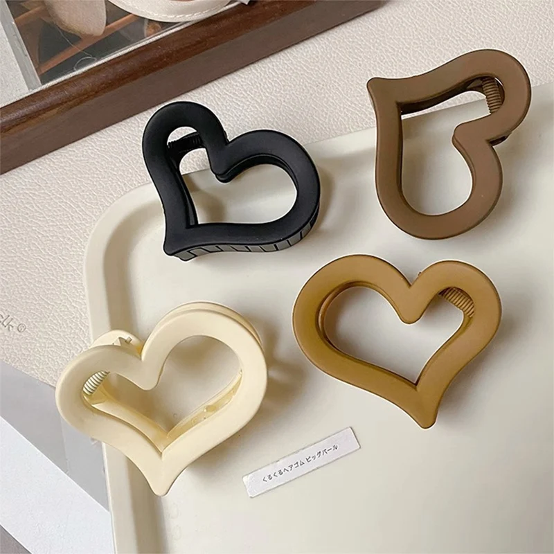 4pcs/set Plastic Hair Claw Clip Small Matte Color Hollowed Square Heart Geometric Shark Clips Hair Clip Women Hair Accessories