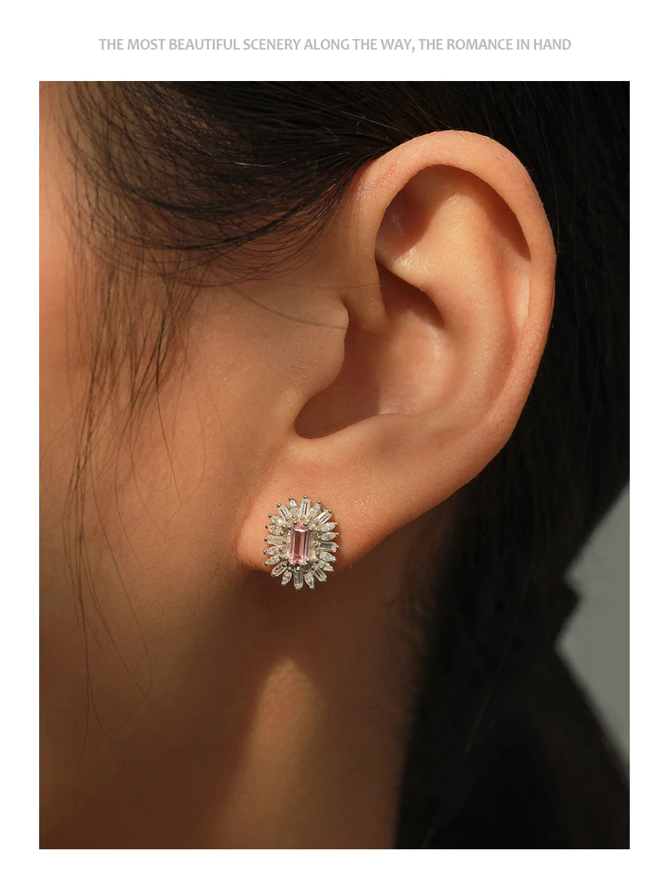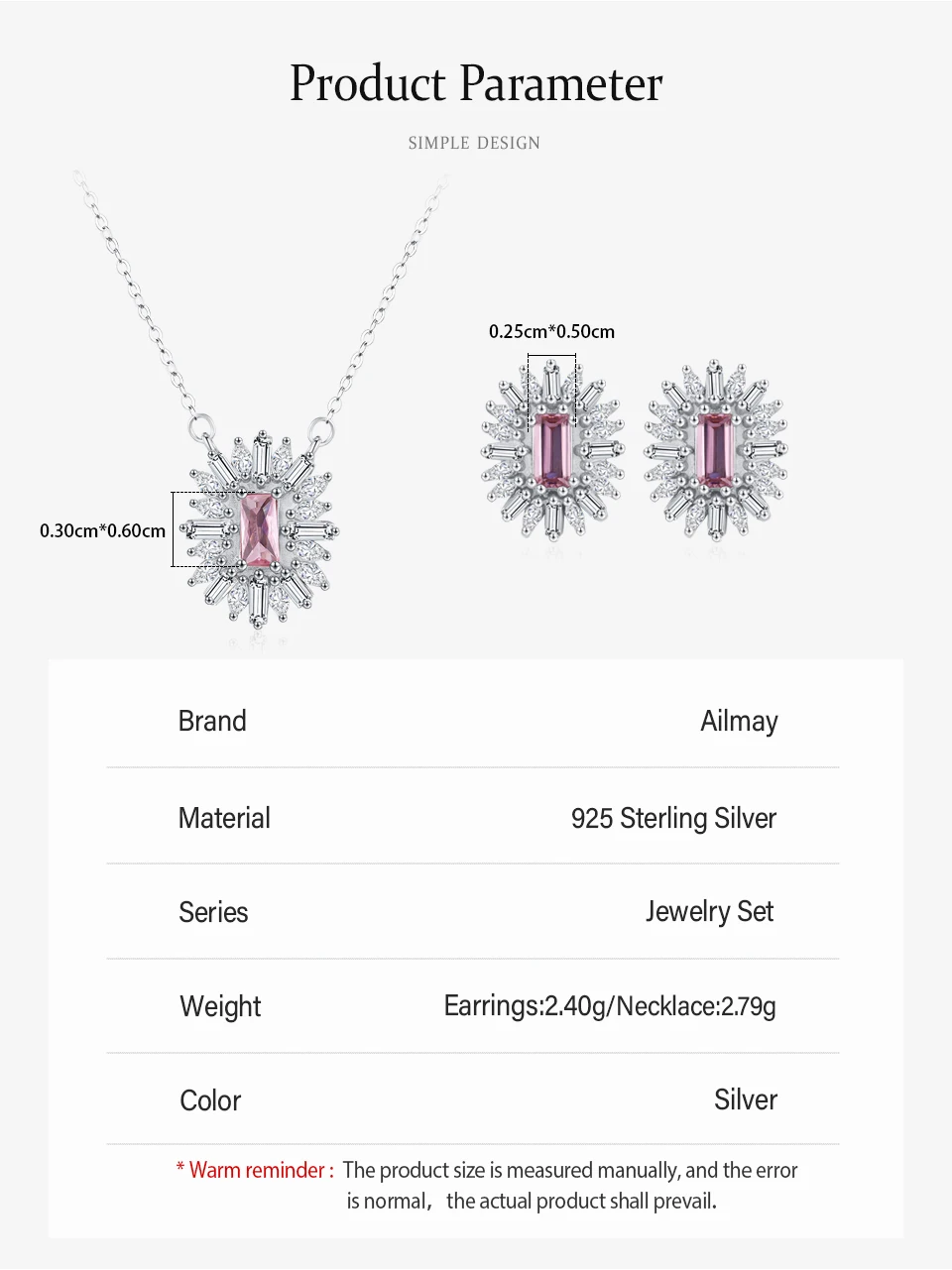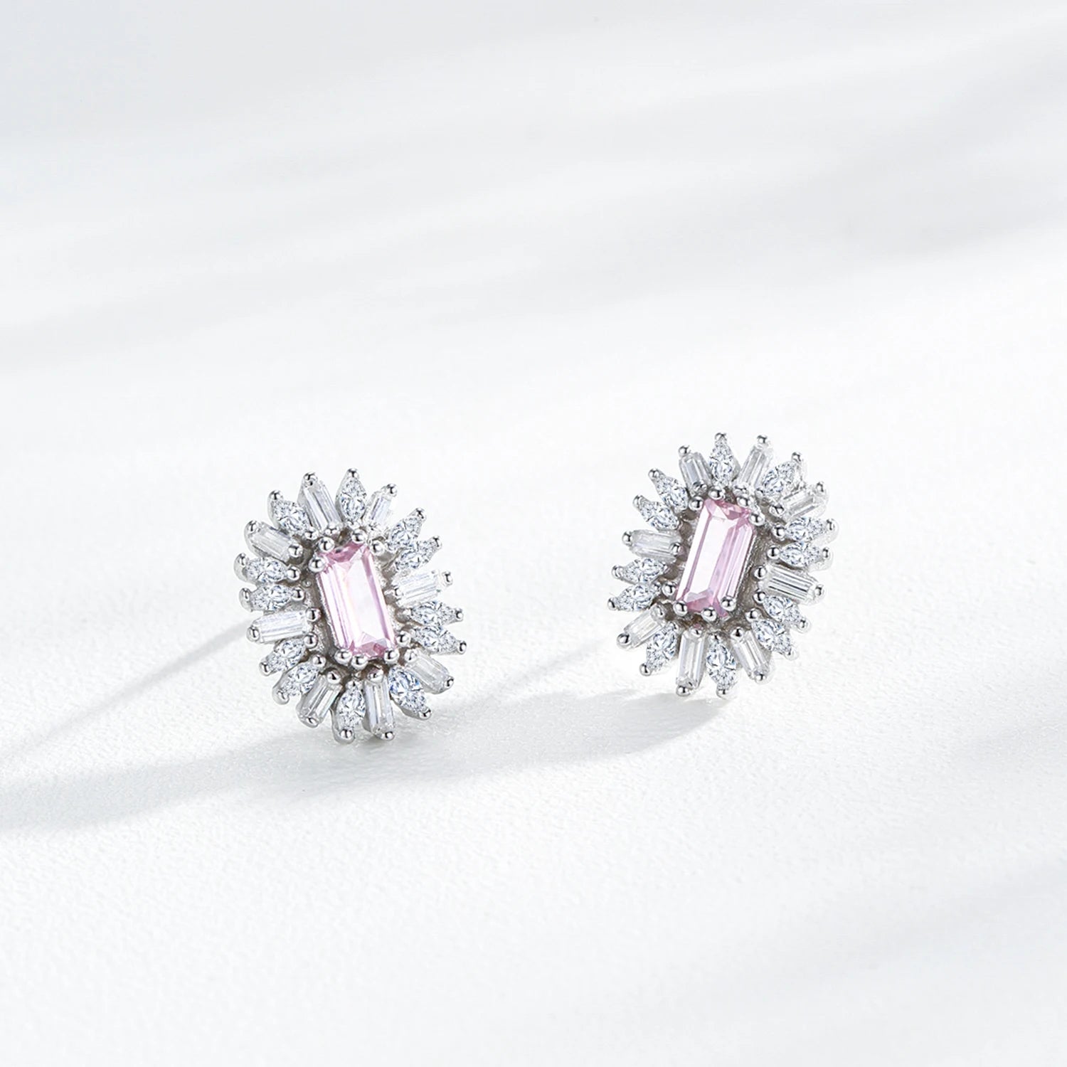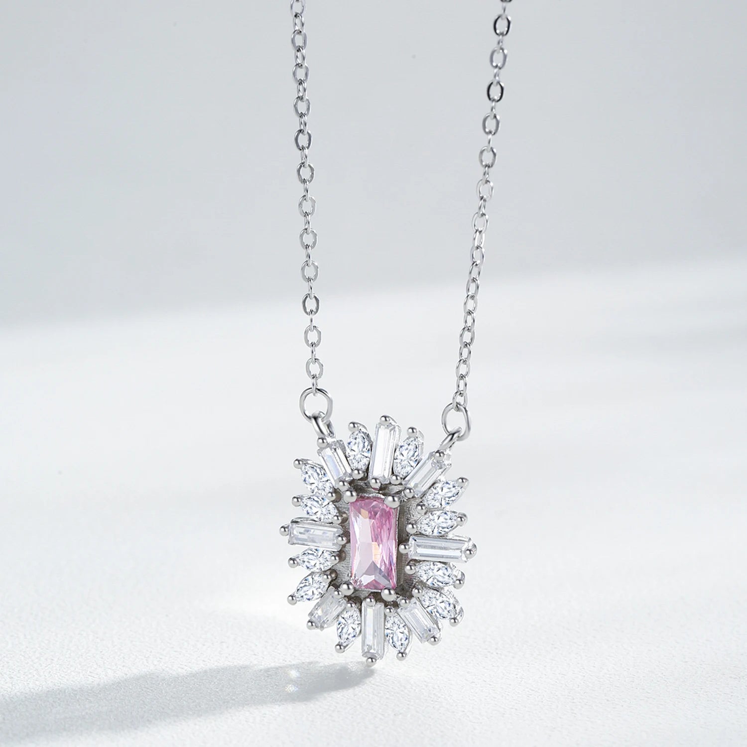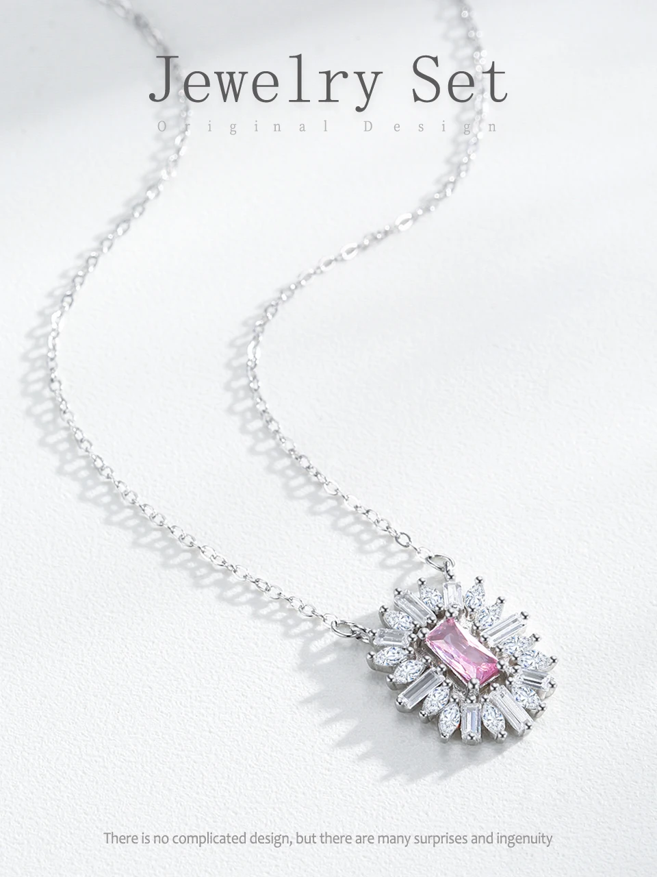 Conjunto de Jóias Românticas para Casamento Ailmay Luxuoso Colar e Brincos de Prata Esterlina 925 com Girassol Rosa Retangular para Mulheres