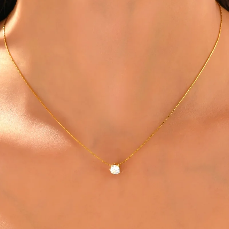 Colar de Pingente Redondo de Zirconia Cúbica de Aço Inoxidável ASONSTEEL para Mulheres, Joias Minimalistas Charmosas, Design Brilhante como Presente