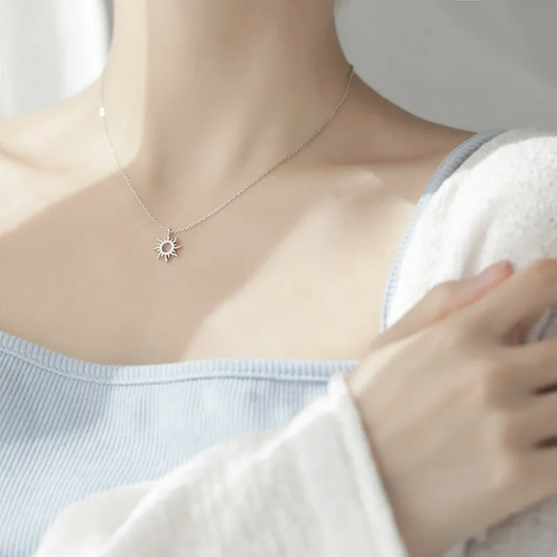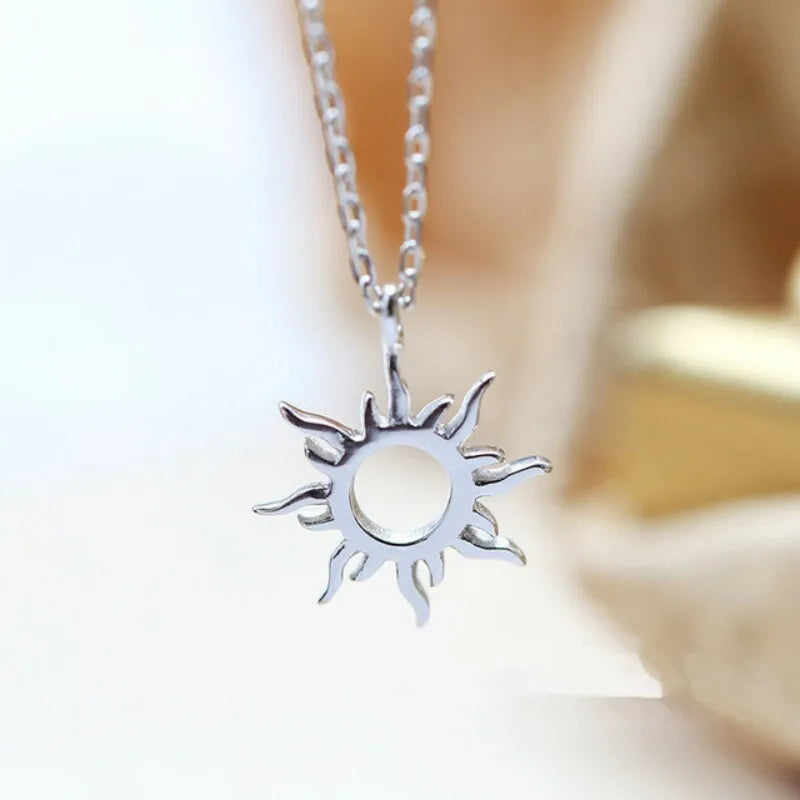 Colar Pendente Étnico Sol de Cor Prata BFCLUB para Mulheres, Jóia de Moda para Festa de Aniversário, Presente da Tendência