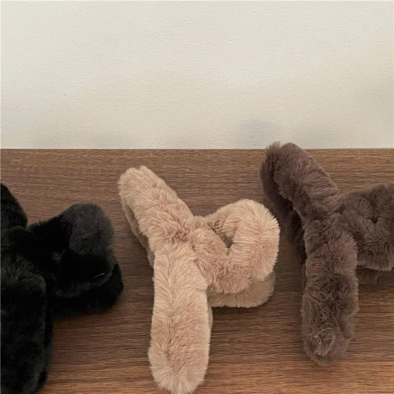 Clips de cabelo de tubarão grande em pelúcia de urso de cartoon com cabelo, claw faux fur, moda coreana para outono e inverno, clipes de caranguejo INS novos e presilhas.