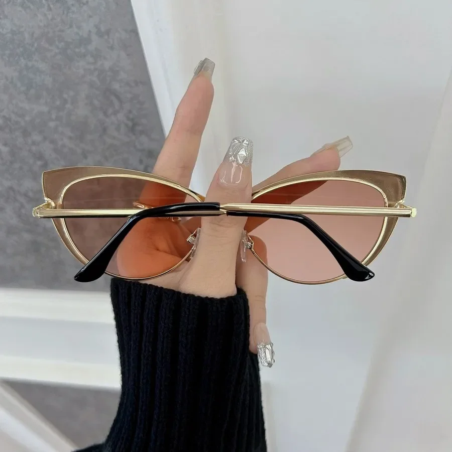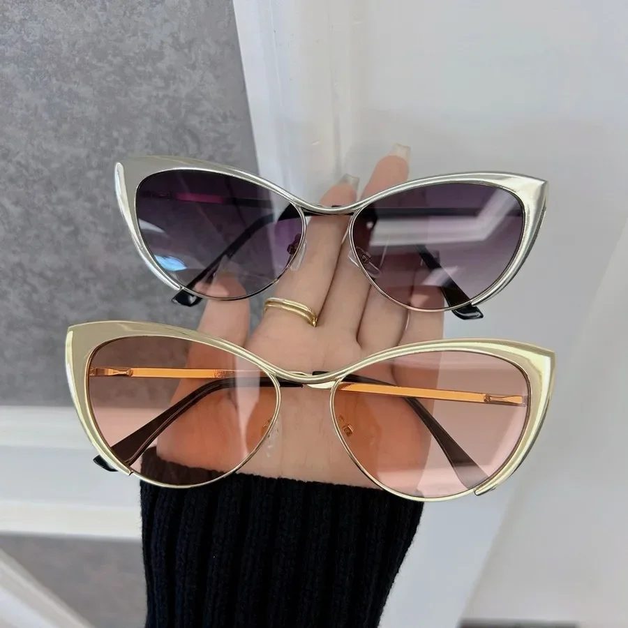 Óculos de sol estilo gato casuais para mulheres e homens, armação em metal, luxuosos, marca de moda.