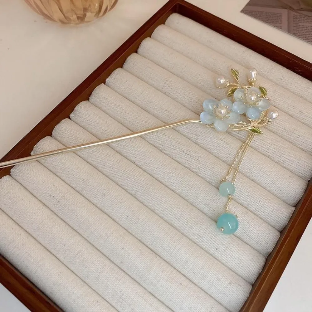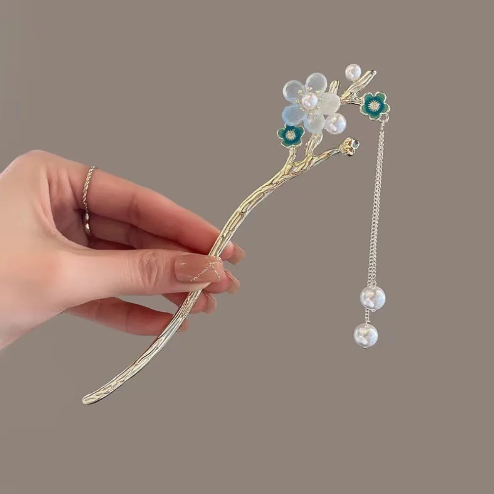 Pinhão de cabelo estilo chinês com hastes de metal, estilo antigo, com franja de orquídea, flor, tassel e acessórios para cabelo feminino.