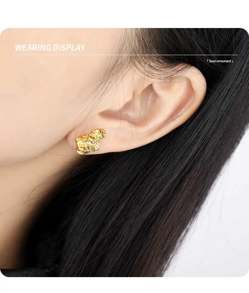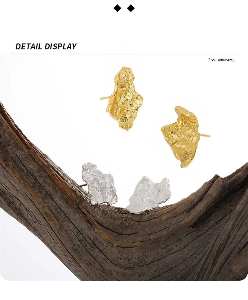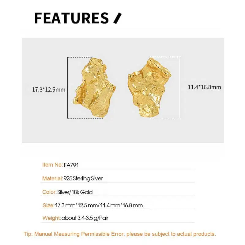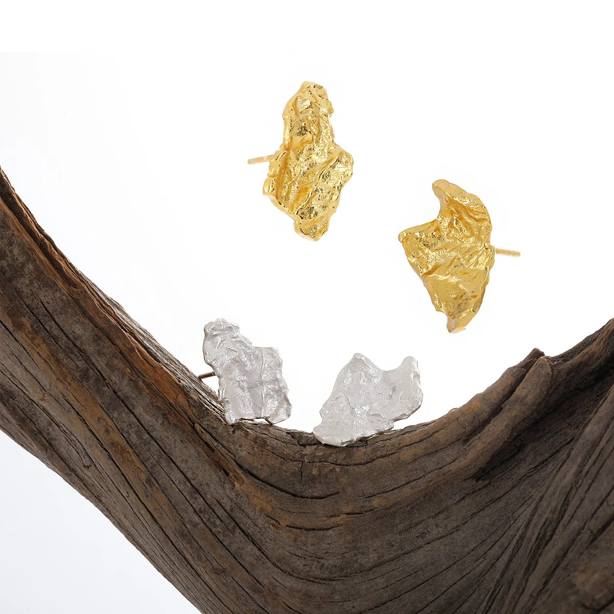 Tipo de Joia: F.I.N.S Textura Assimétrica S925 Brincos de Prata de Lei Dourados Irregulares Piercing de Orelha Joias Finas Acessórios Femininos