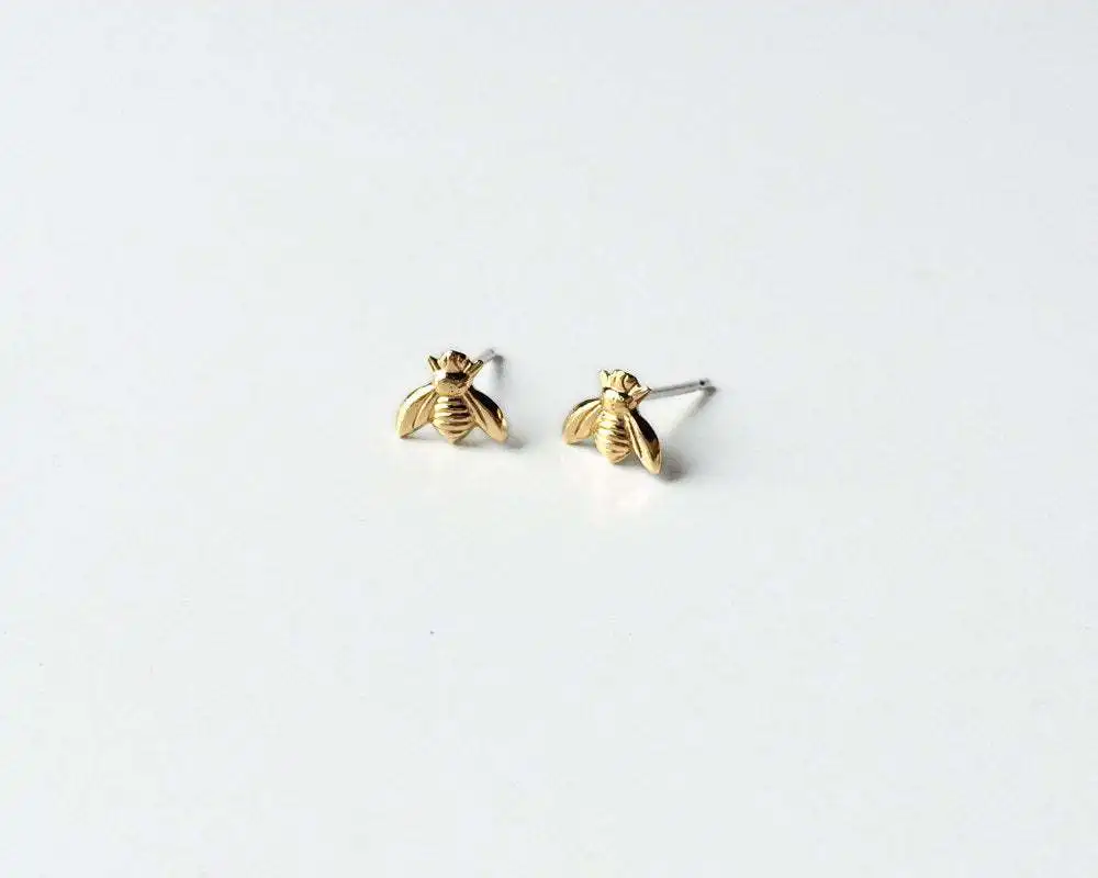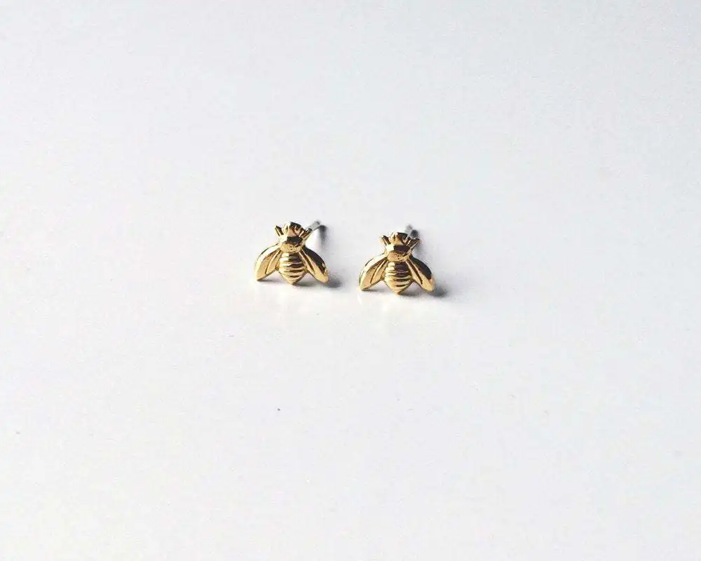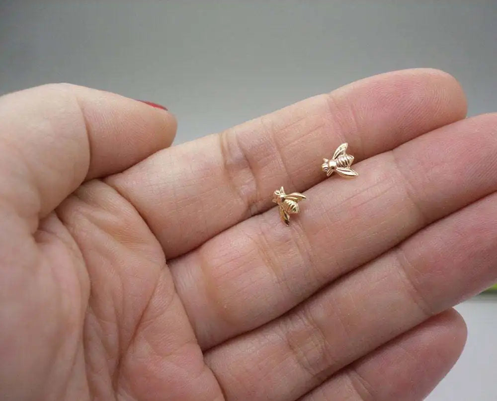 Brincos de Estudo de Inseto Fashion Cute - Brincos de Abelha Bumble Pequenos em Cor Dourada, Mini Rainha Abelha, Acessórios de Joias para Mulheres em Festa