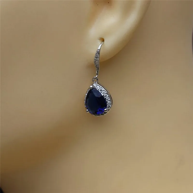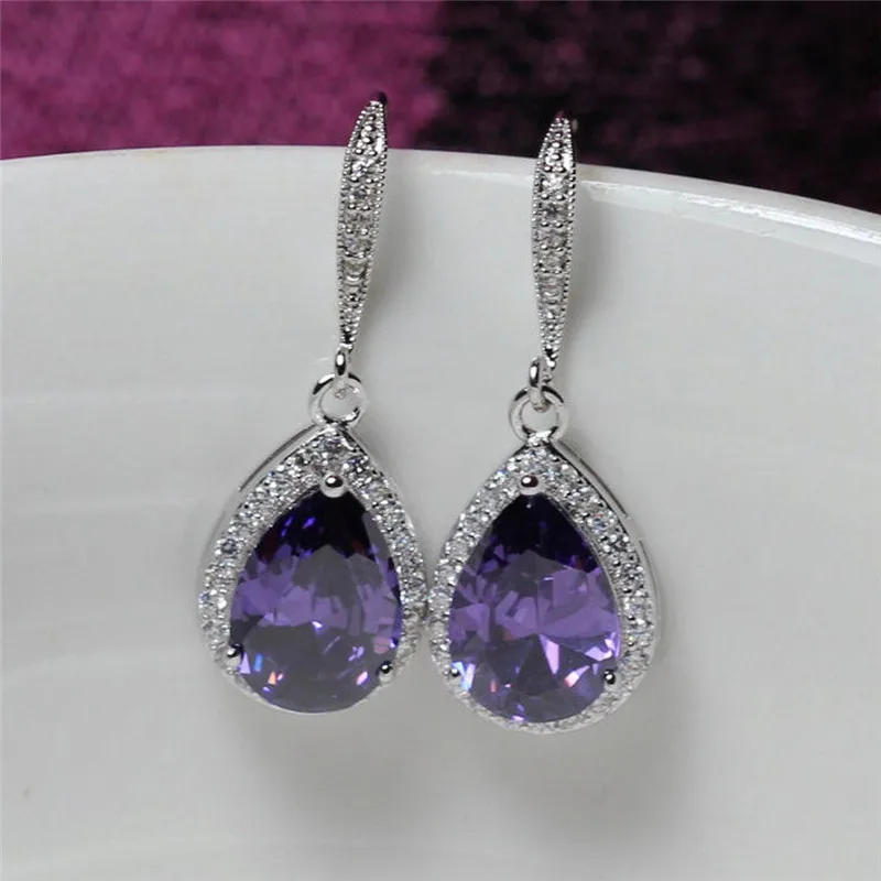 Brinco Clássico Huitan em Gota para Mulheres em Branco/Azul/Roxo com Pedra CZ Acessórios para Casamento, Noivado e Festas Joias Simples e Elegantes
