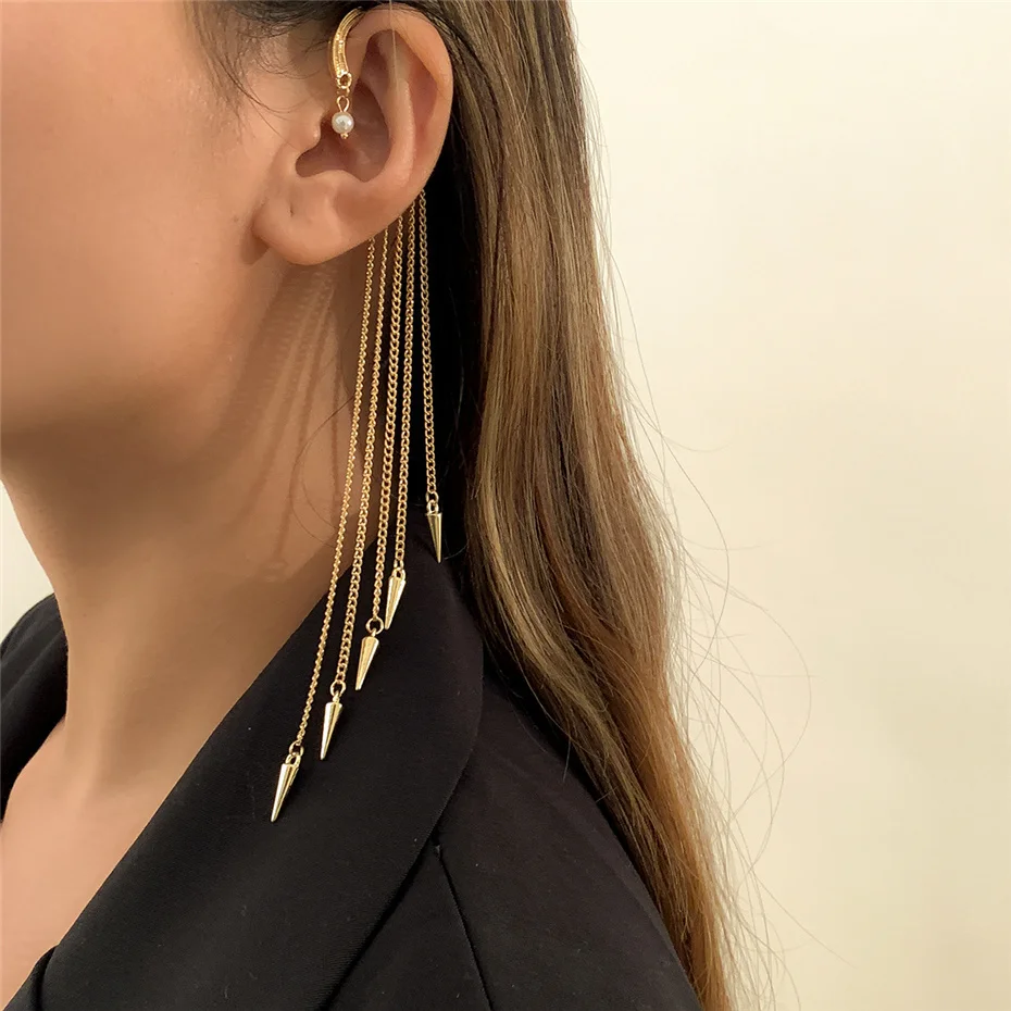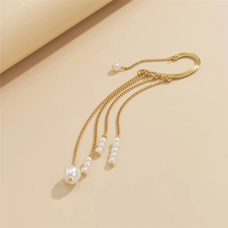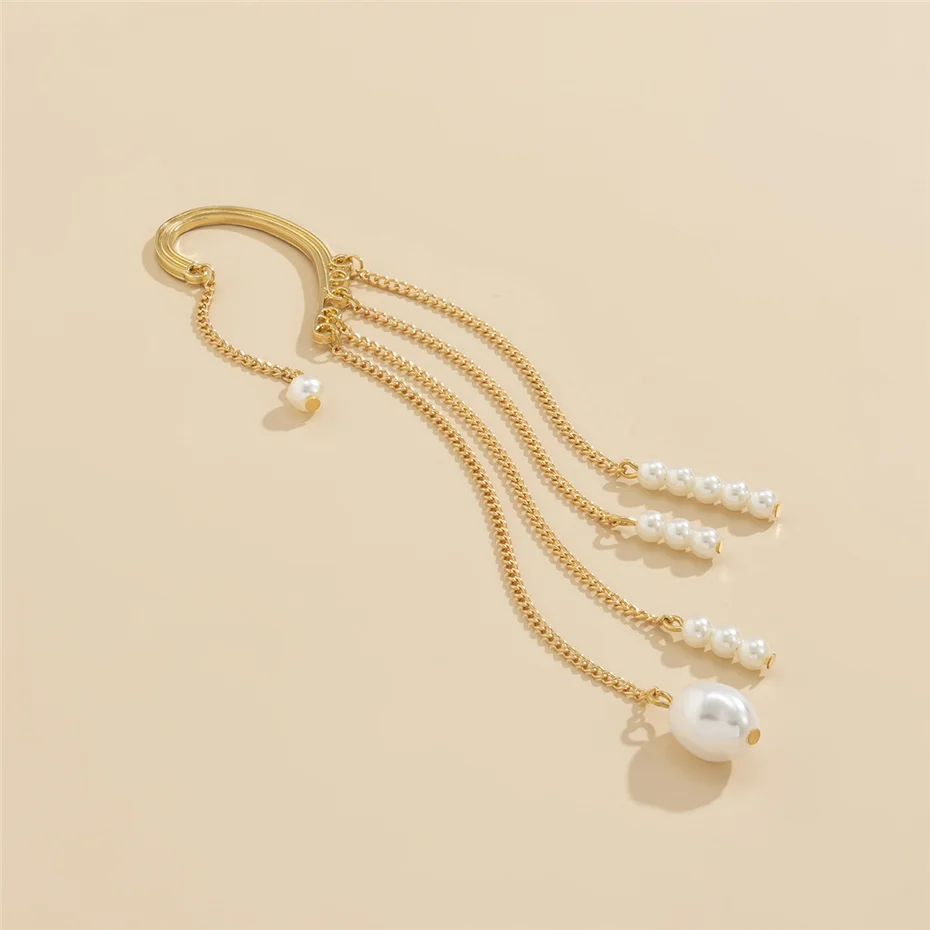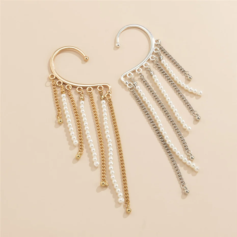 Brinco de Clip Geométrico com Pérolas Imitadas Ingemark Long Tassel Sem Perfurar Para Orelha Cuff Cartilagem Elegante Feminino Joia