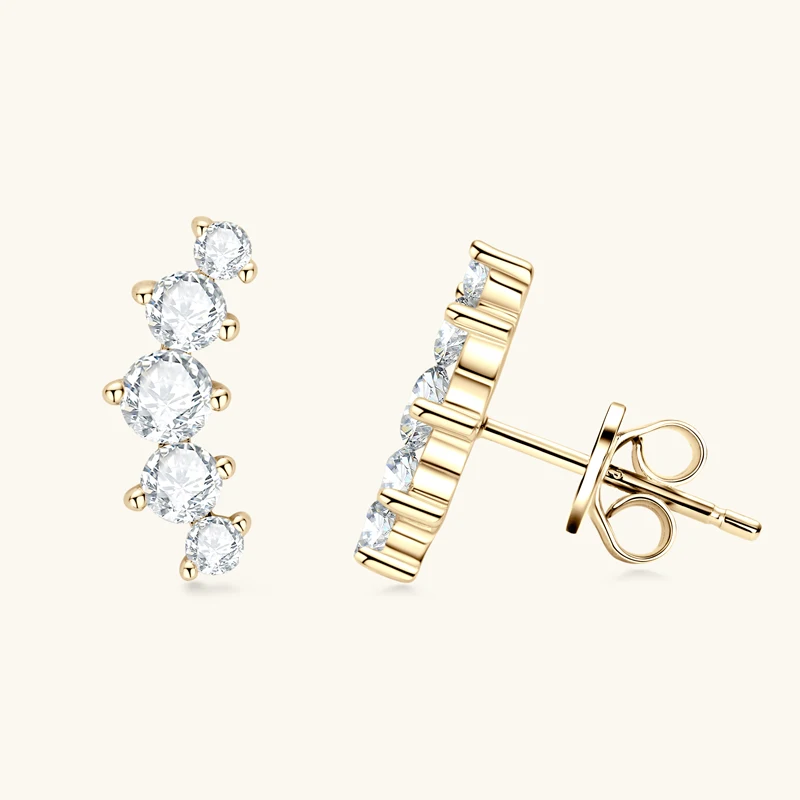 Brincos em Moissanite IOGOU D VVS1 com Curvas Graduadas para Mulheres, Brincos de Pirecing em Estilo Stud, Joias Finas em Prata Esterlina 925