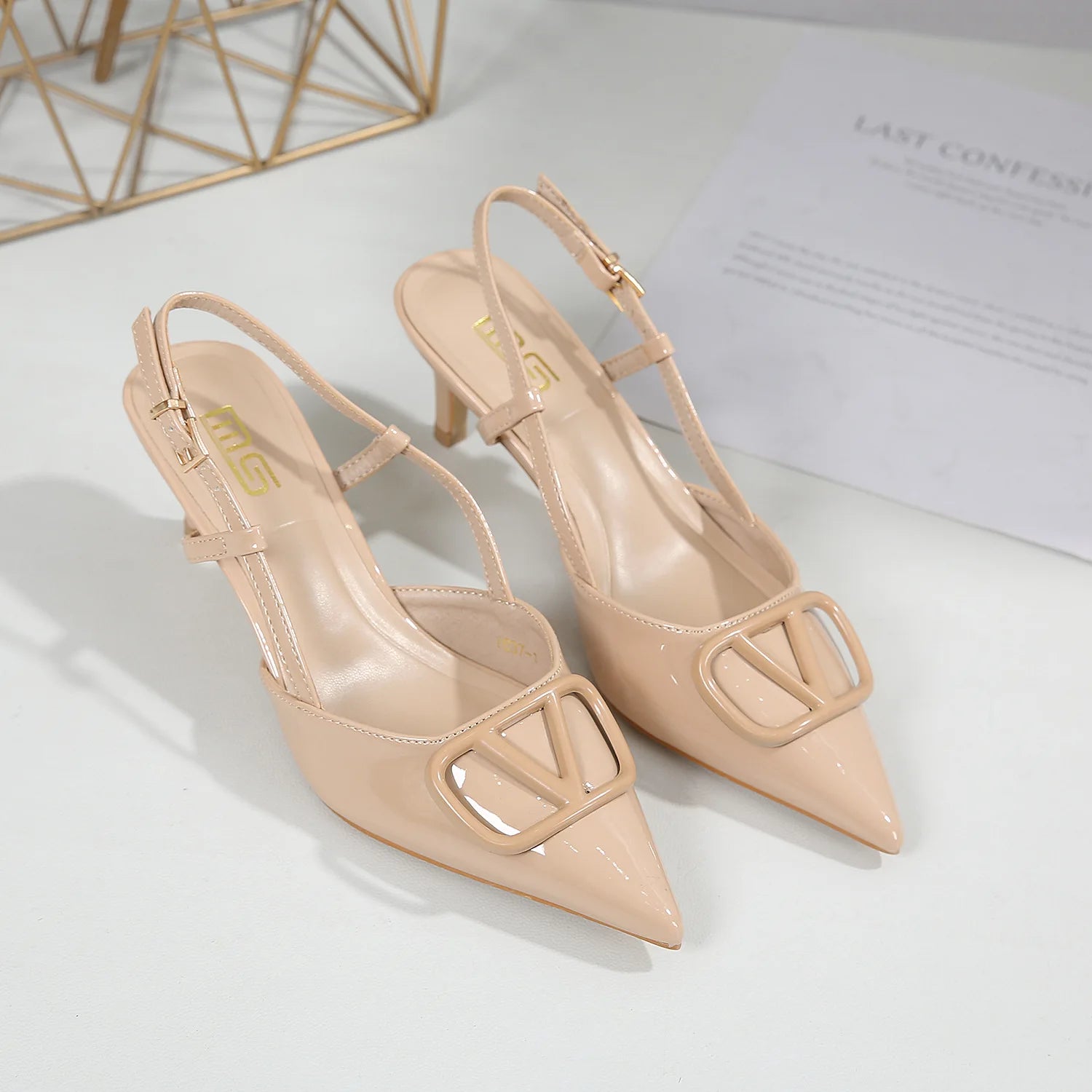 Sandália Feminina KM-ROYA 2025 de Luxo com Fivela de Qualidade, Salto Médio de 6CM/2.4polegadas, Sapatos de Vestido, Sapatos Tipo Pump, Sandálias Femininas para Uso Externo