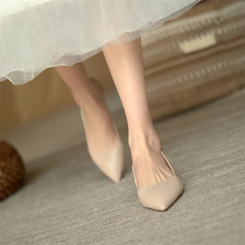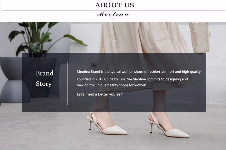 Meotina Sapatos Slingback Femininos em Couro Genuine com Fivela, Salto Fino, Bico Fino, Salto Médio para Mulheres, Calçados de Primavera