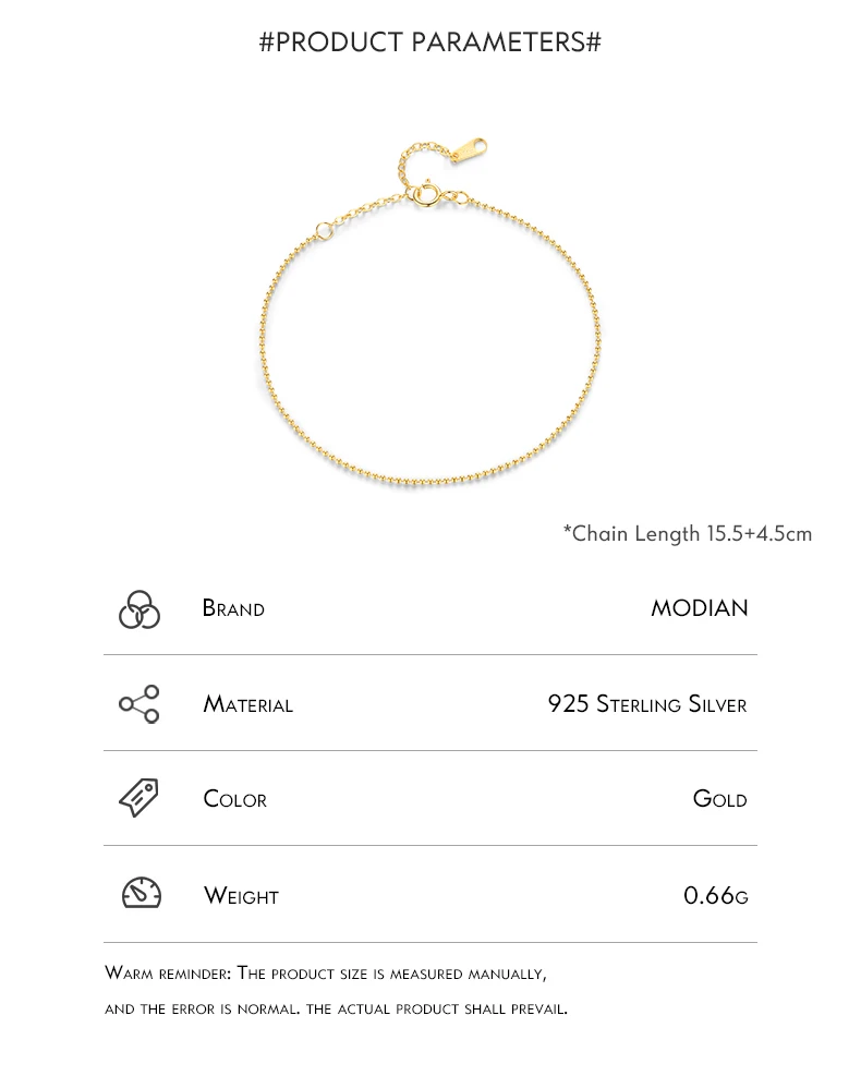 MODIAN Pulseira Ajustável Empilhável de Pequenas Esferas Finas em Prata Esterlina 925 - Presente de Dia dos Namorados para Mulheres - Joias Finas