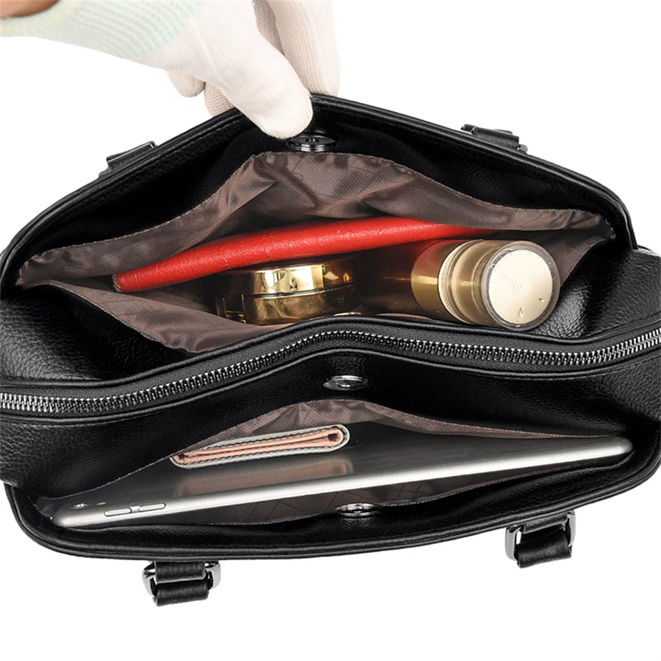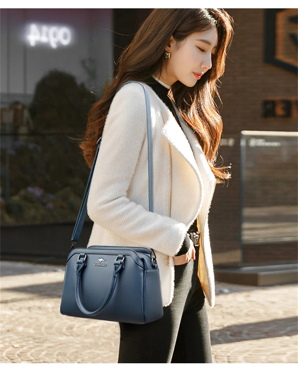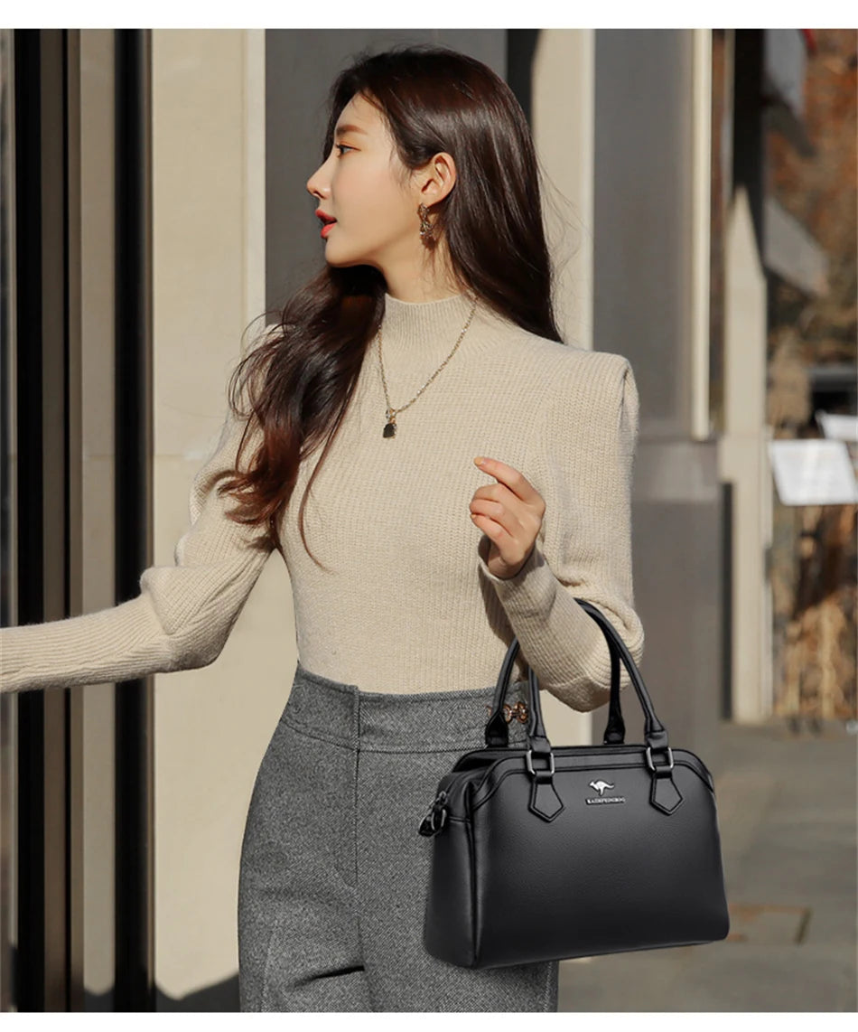 Multi-pocket Handbag Purses Genuine Cowhide Leather Shoulder Bag Luxury Designer Crossbody Messenger Sac Elegant Tote for Women