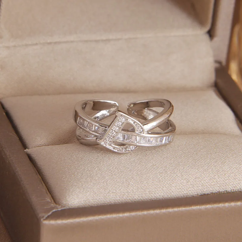 Anéis Ajustáveis de Cristal Sight Novo Letra D para Mulheres, Joias de Marca de Moda, Anéis Cruz de Zircônia, Acessórios de Festa, Presentes