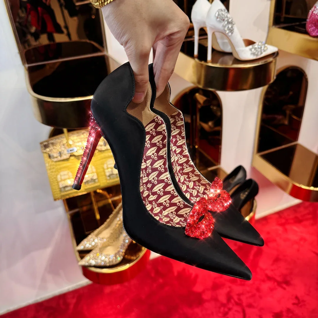 Sapatos de salto alto brancos com bico fino e fundo vermelho, estilo elegante feminino com saltos finos, sapatos de festa para casamento.