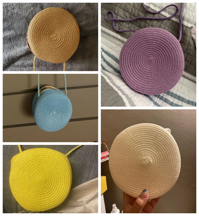 Round Straw Bag Women Woven Beach Crossbody Bag for Ladies Cute Shoulder Rattan Handmade Knitted Candy Color Small Handbag Bolsa