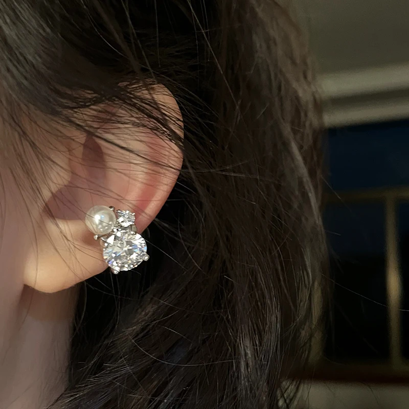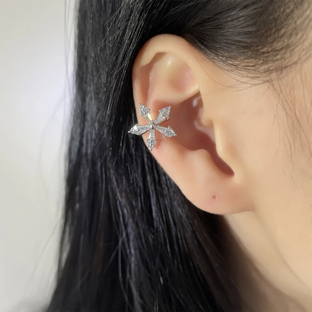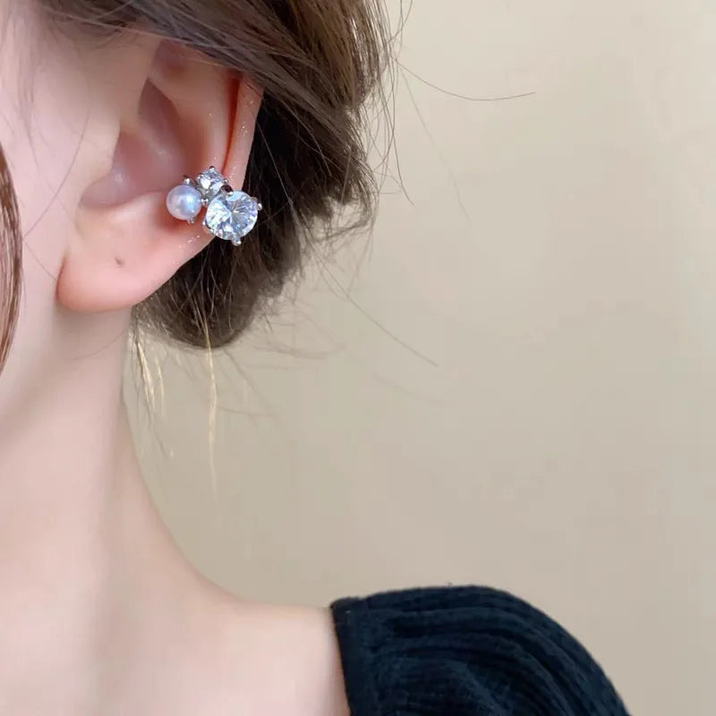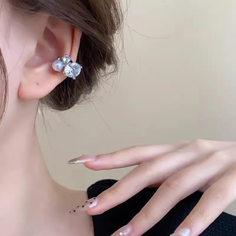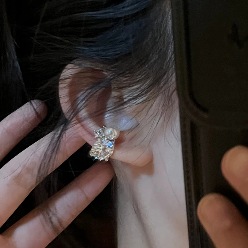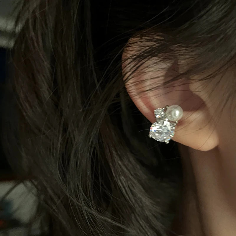 Clipe de Orelha Grande de Zircônia Brilhante Sem Furos para Mulheres, Design de Nicho, Brincos de Alto Estilo, Brincos de Temperamento, Clipe de Osso da Orelha