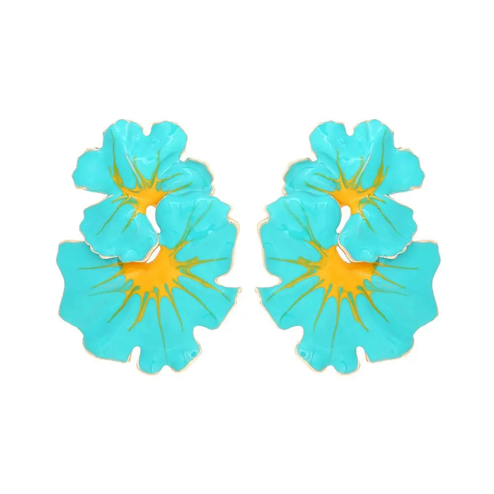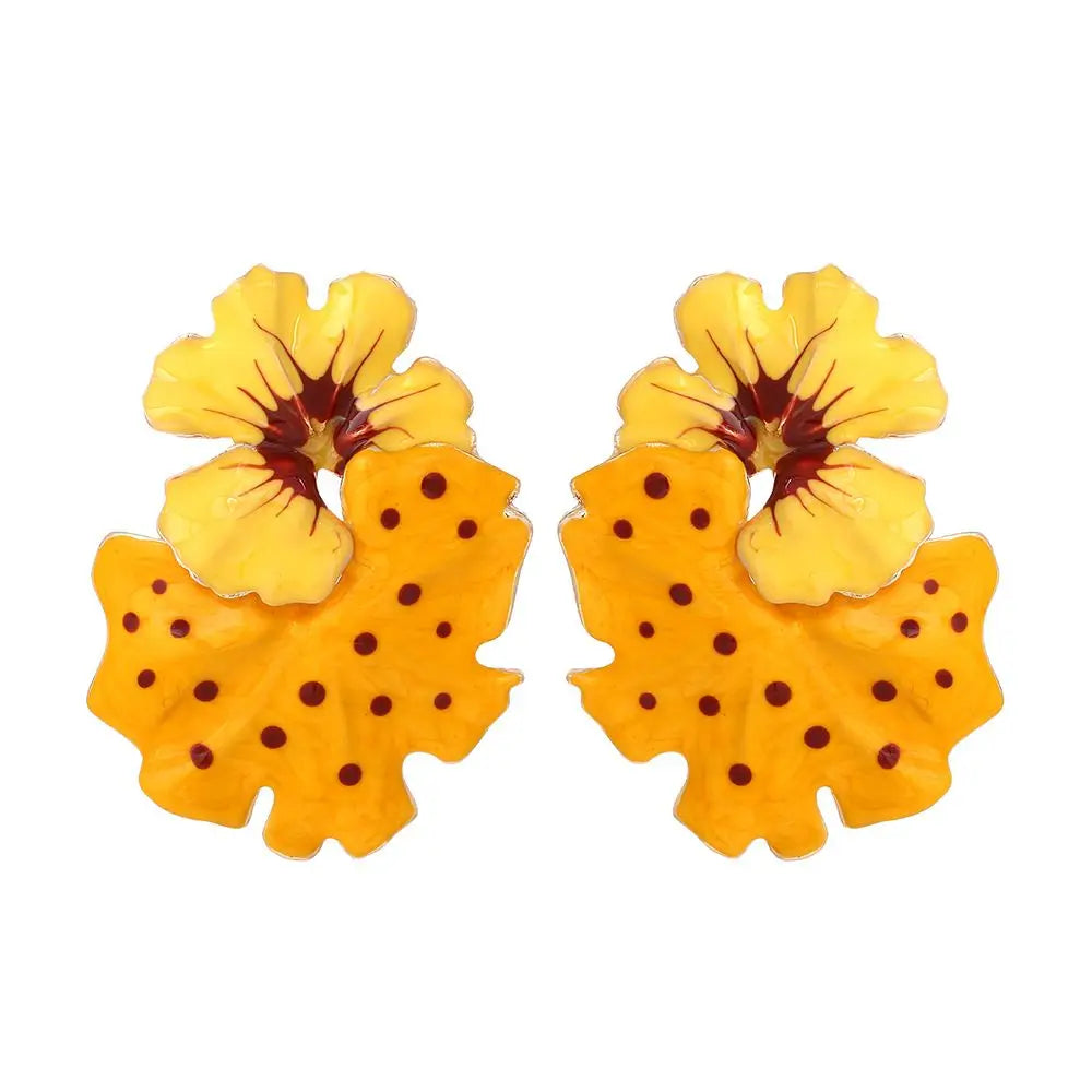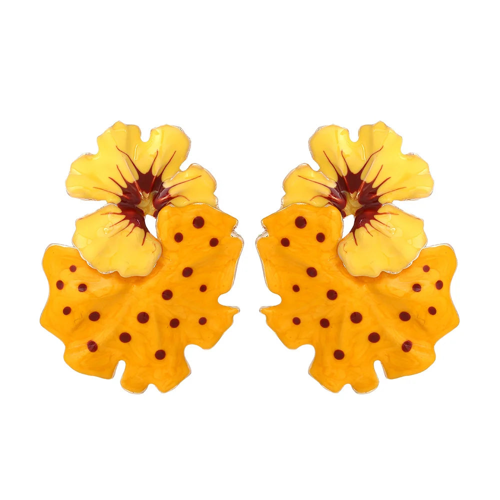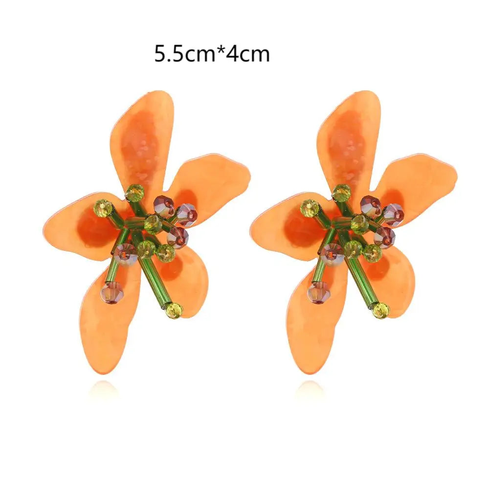 Brinco Feminino Doce Romântico de Primavera, Brincos de Metal em Liga com Flor, Brincos de Stud de Resina Colorida
