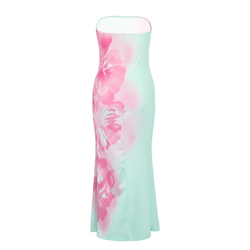 Vestidos de Verão Femininos Nova Moda Streetwear Impressão Casual Vestido Maxi Slim Sexy Elegante Feminino Costas Nua Sem Alças Roupas