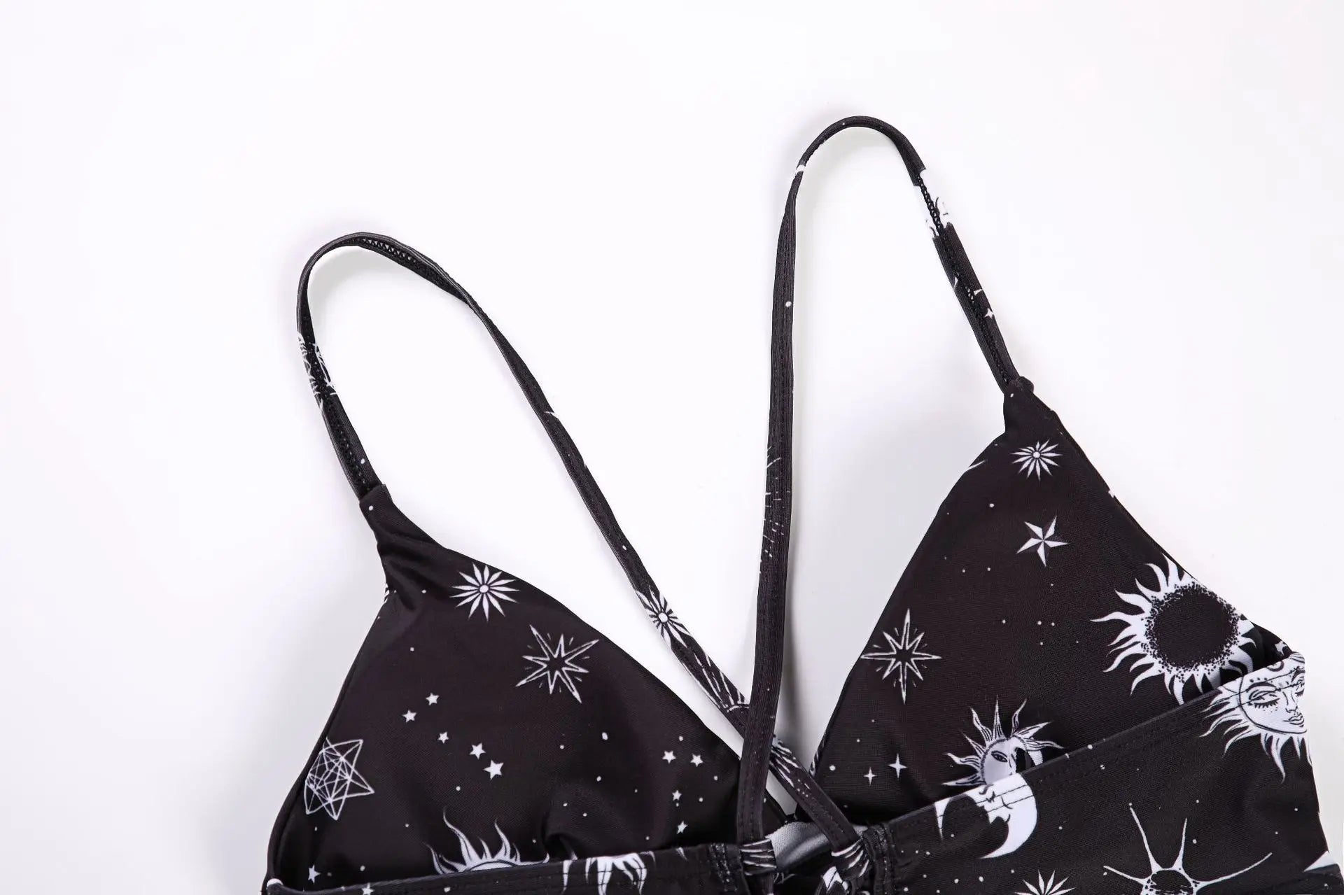 Conjunto de Biquíni Estampado de Girassol - Moda de Praia Sexy para Mulheres 2025 - Biquíni com Push Up e Almofada - Roupas de Banho - Maiô - Biquíni