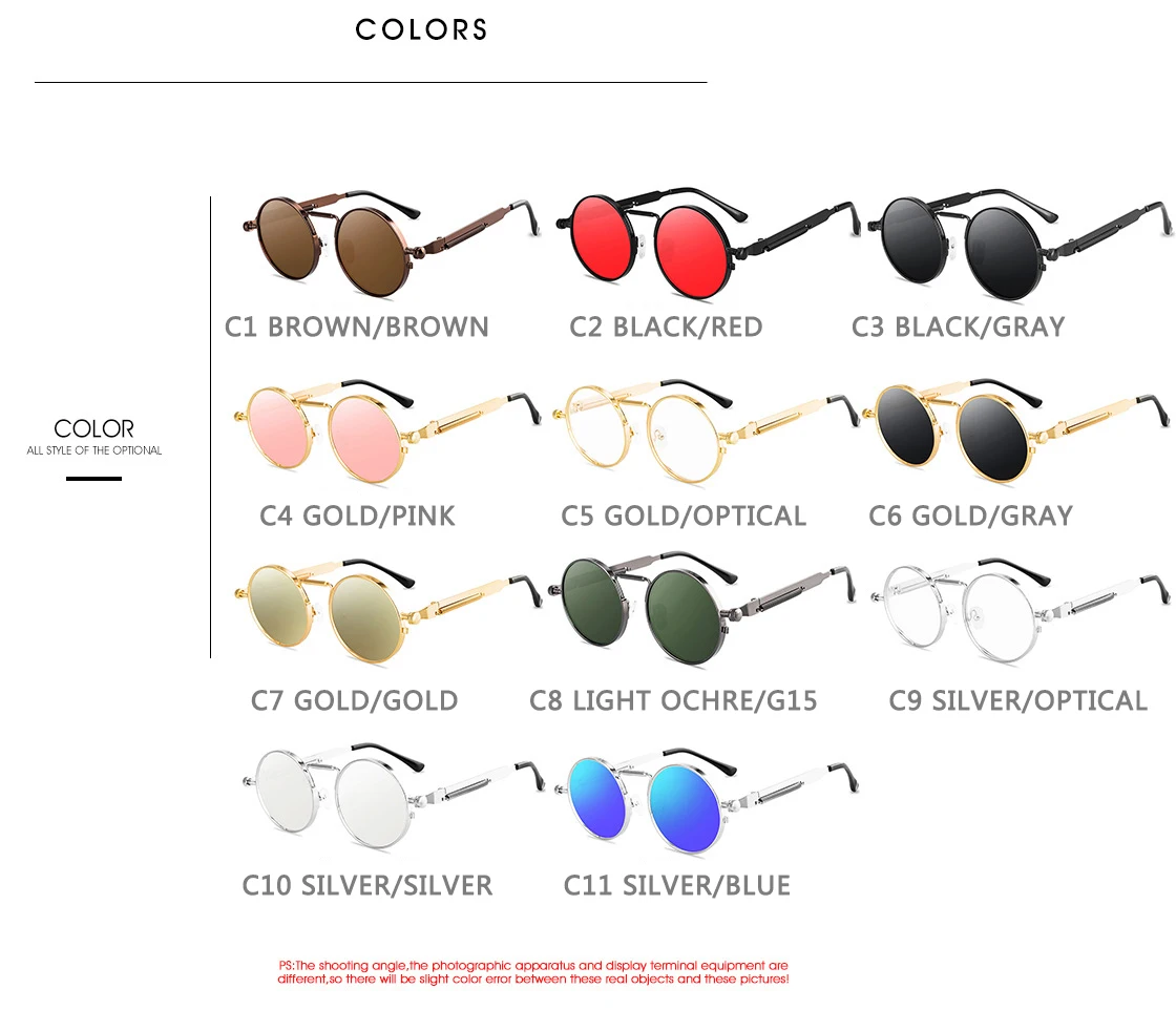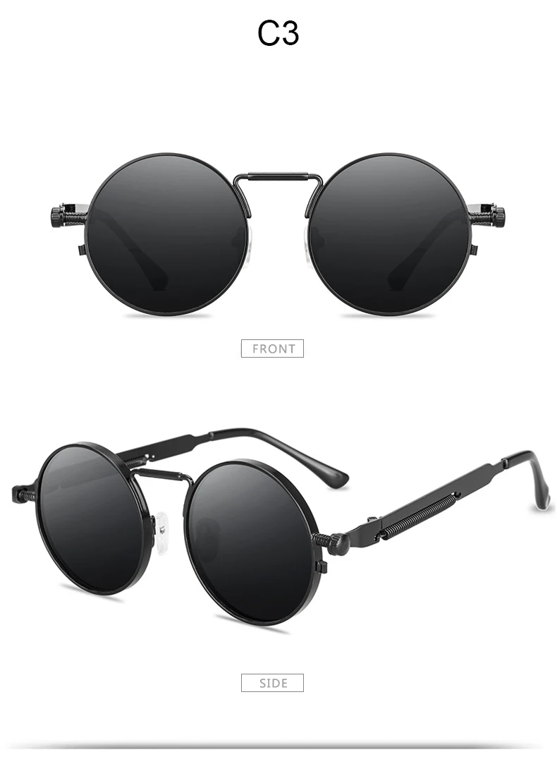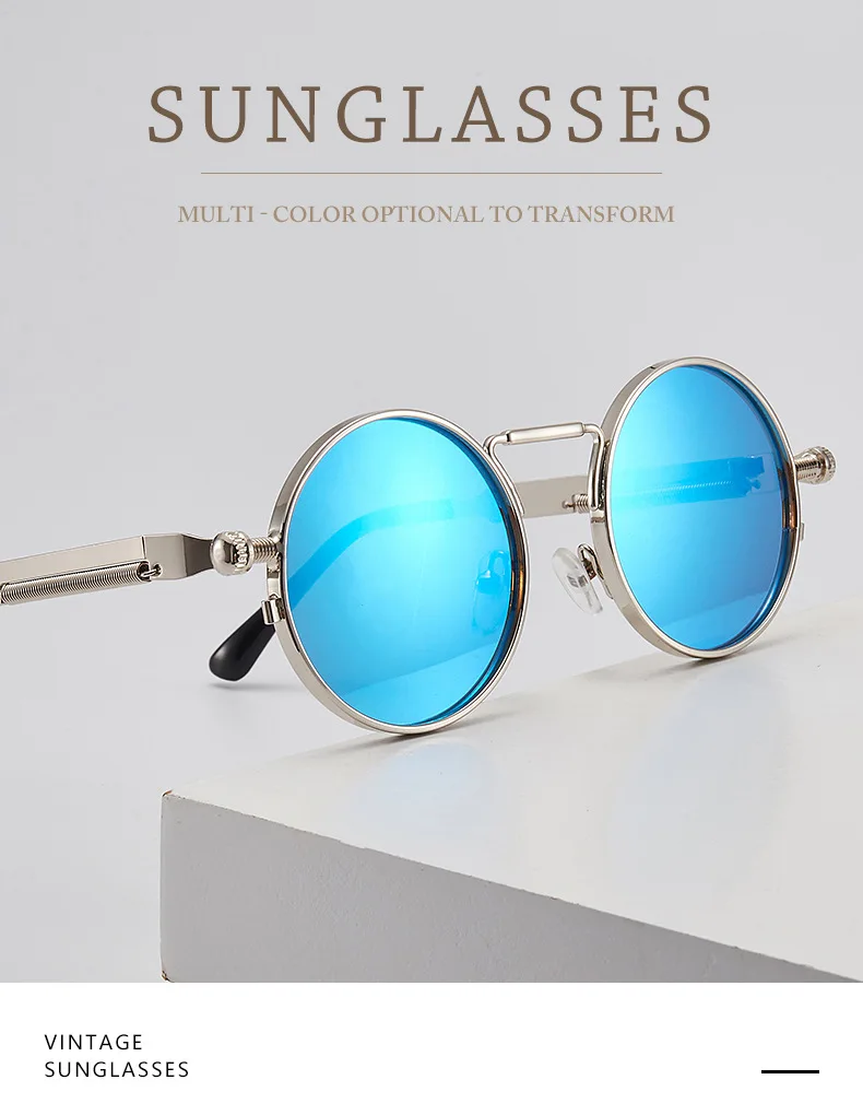 Óculos de sol estilo punk vintage para homens, armação redonda em metal, óculos de sol para mulheres, moda, eyewear, gafas de sol mulher UV400
