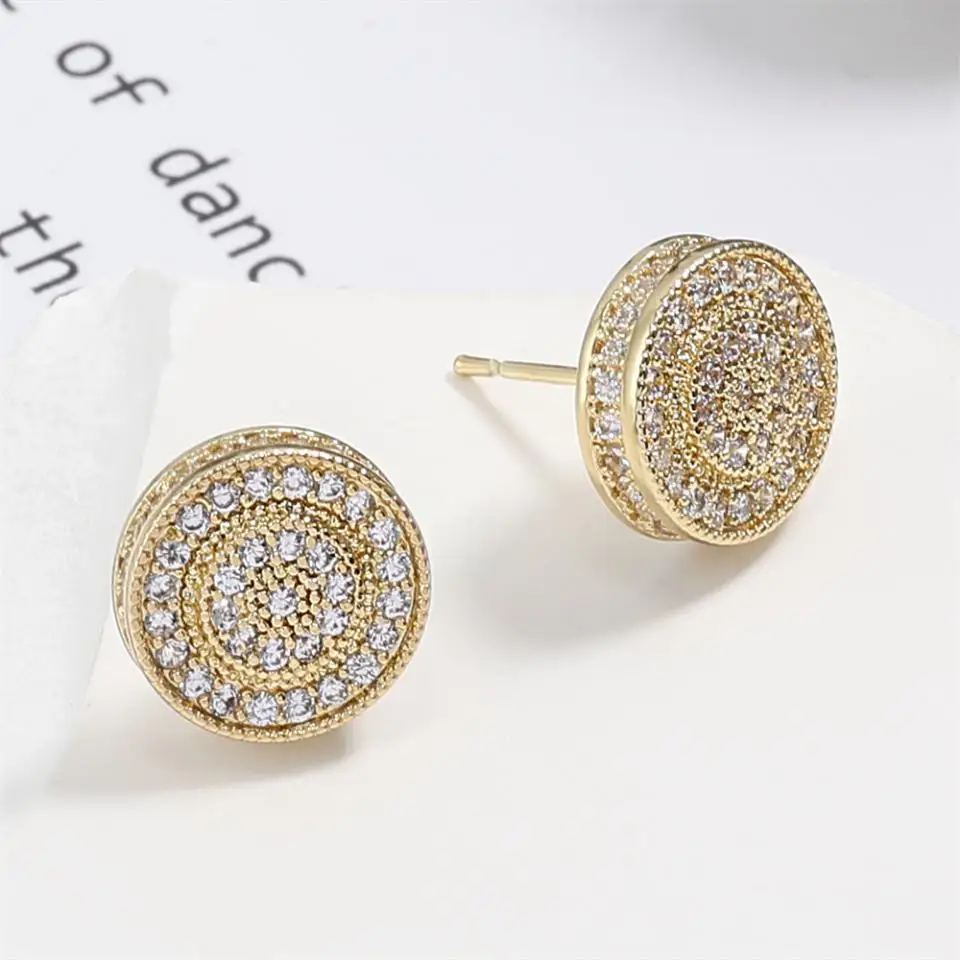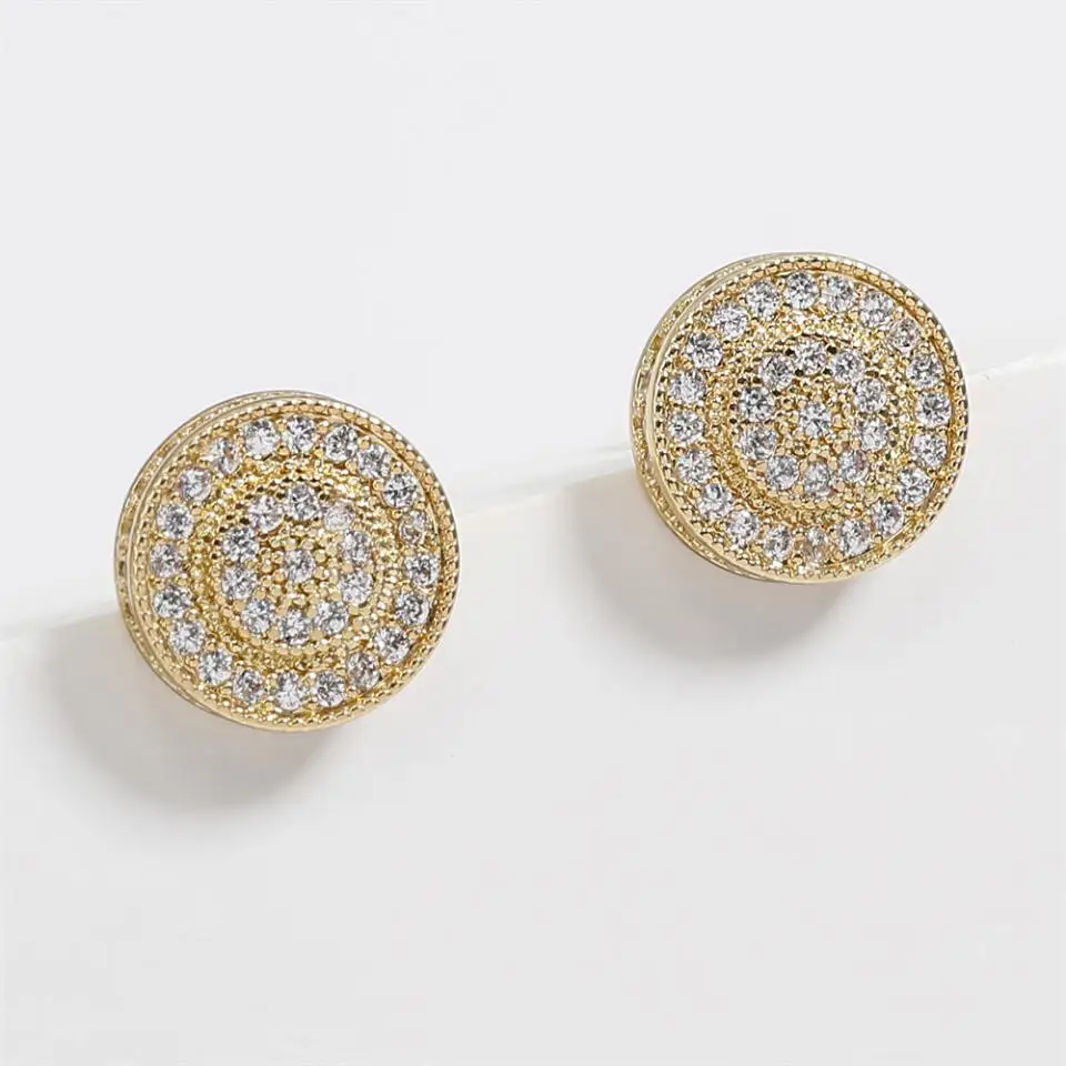 Brincos de Stud Zirconia Micro em Inlay Redondo ZAKOL Exquisito para Mulheres, Joias de Festa de Casamento com Geometria Completa de CZ
